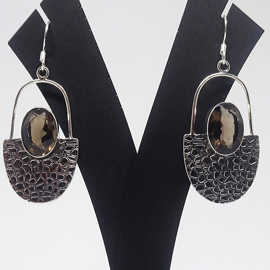 Smoky Topaz Lock Shaped 92.5 Silver Earring