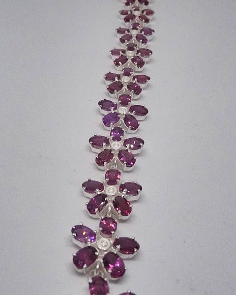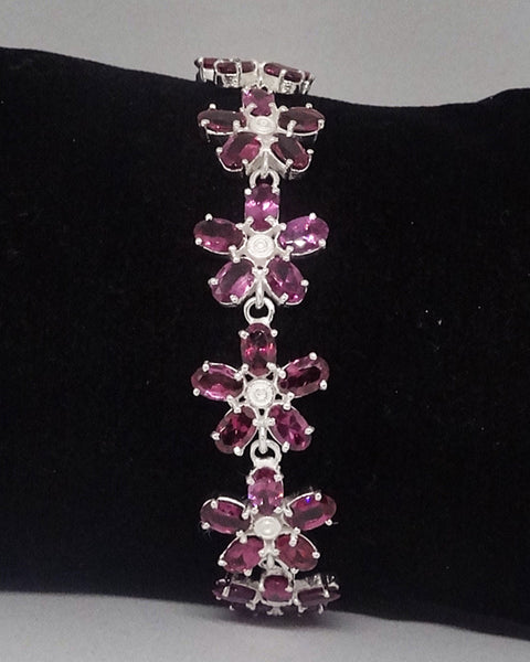 Elegant Star Petal Design Garnet Bracelet with beautiful deep pink garnet stones