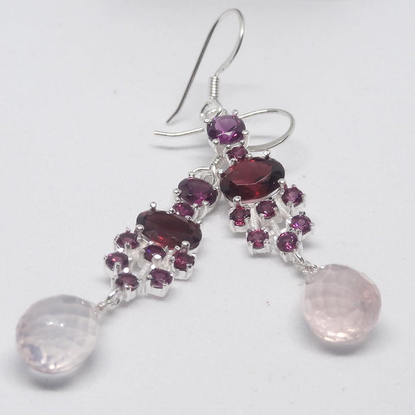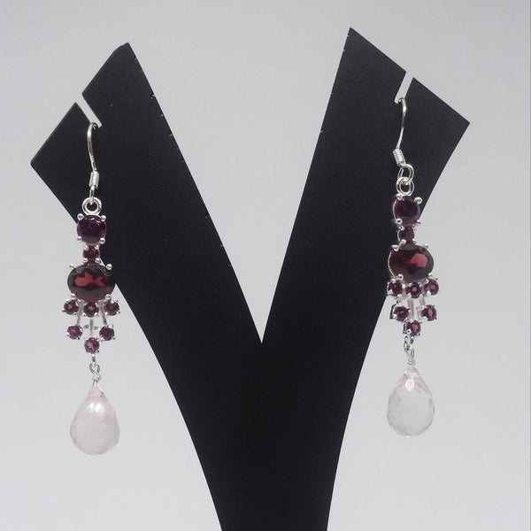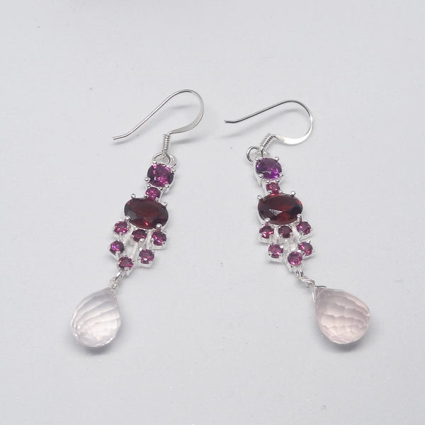 Party Earring With Garnet And MoonStones