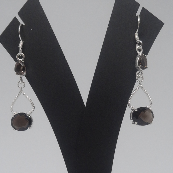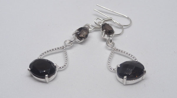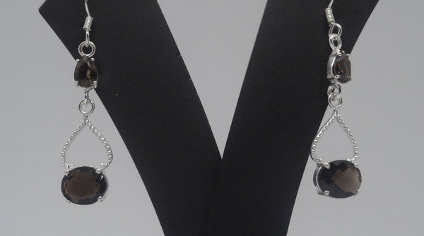 Light Weight Delicate Party Wear Earrings With Smoky Topaz in 925 Silver