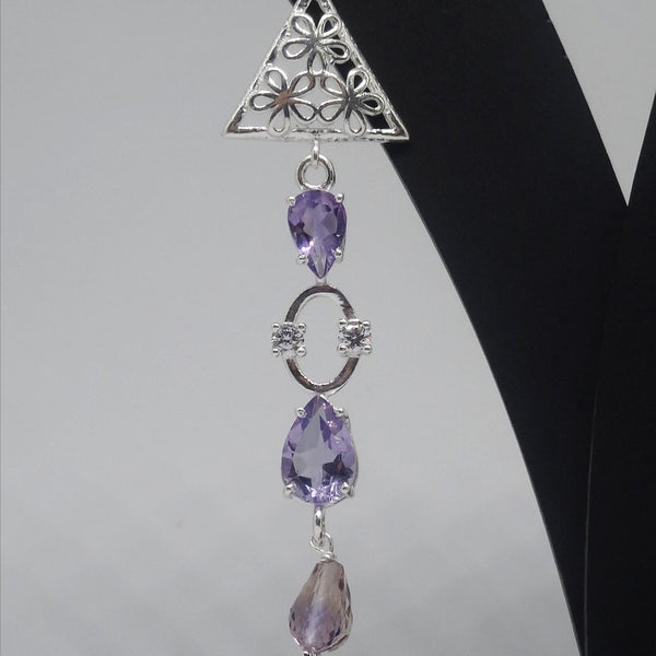 Extra Long Fashionable Earrings With 2 Color Stones set in 925 Sterling Silver
