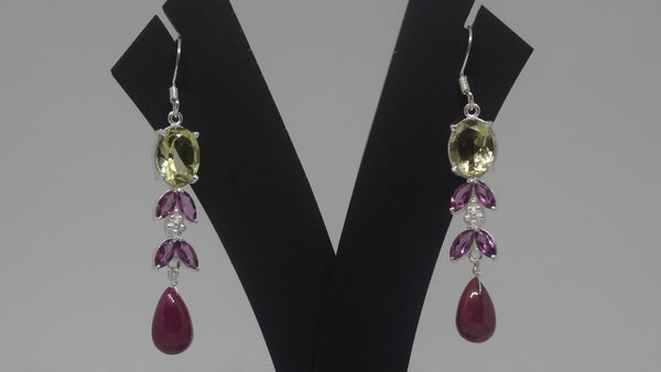 Ruby Drops With Garnet Marquise And Oval Lemon Topaz in 92.5 Silver