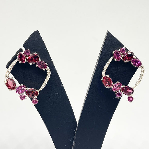 Beautiful Pair of Red & Pink Garnet Studded 925 Silver Earrings
