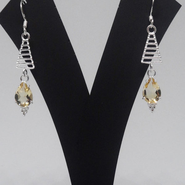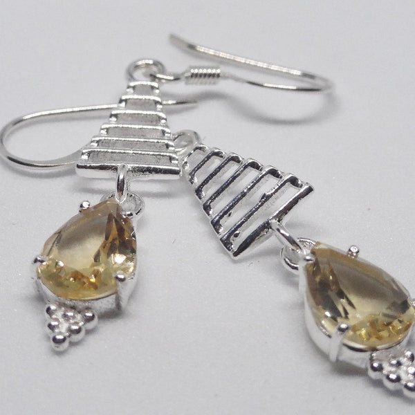 Delicate Fancy Earring with Citrine Gem in 925 Sterling Silver